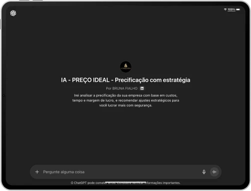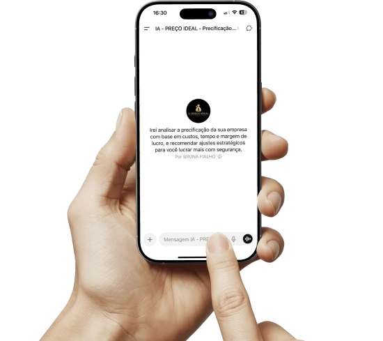 É uma ferramenta de inteligência artificial, que analisa seus custos, margens e mercado para calcular o preço ideal de venda do seu produto ou serviço em apenas 1 minuto.